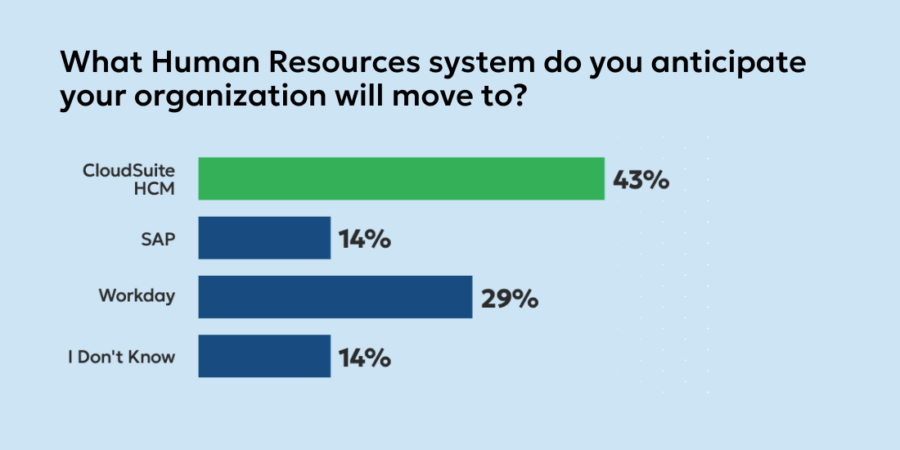For those on Lawson for HR, many respondents (43%) plan to migrate to CloudSuite HCM in the near future. Less than one third are planning on moving to Workday (29%), which is interesting when you consider that Workday has historically been a leader in HR applications and services. Perhaps, Infor, the up-and-comer, is carving more out of the market based on recent product developments and enhancements.