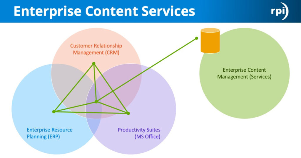 And so where you used to have just a ton of niche solutions, our IT departments worked to start consolidating, and that’s where you start to see functions across the organization basically consolidate into areas in the CRM, into the ERP, and into productivity suites like Microsoft. So as these things started to happen, of course, ECM sort of had to adjust. We had to manage how content was flowing and being used across these. And that’s really where this idea of enterprise content services comes from, is this idea that instead of having a single platform that has to integrate directly with each of these and them all having to conform to ECM, enterprise content services at now is sort of a layer of interfaces and widgets that are able to exchange data between all of them. So the problem with that is as we have consolidation of feature sets, functionality, and all those types of things, it really starts to create a really competitive landscape.